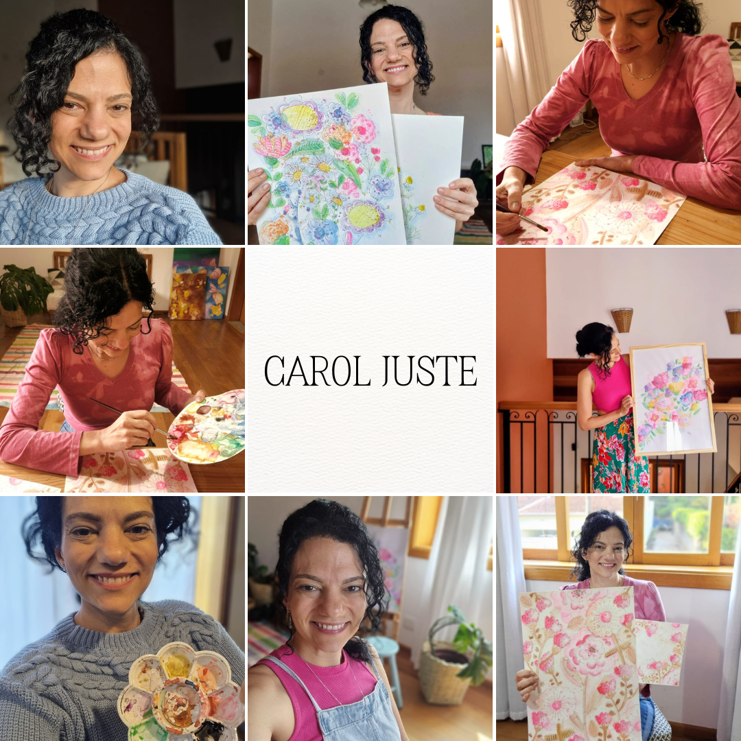 Na pandemia, encontrei na Ayurveda uma nova inspiração. Esse mergulho me levou a redescobrir a riqueza das plantas e flores, e assim nasceram minhas aquarelas florais – obras coloridas, leves e feitas com muito afeto.
